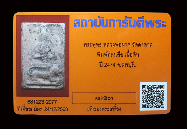 พระลวงพ่อปาน ขี่เสือ ฝากกรุวัดดงตาล สมัยหลวงพ่อผาด 2474
