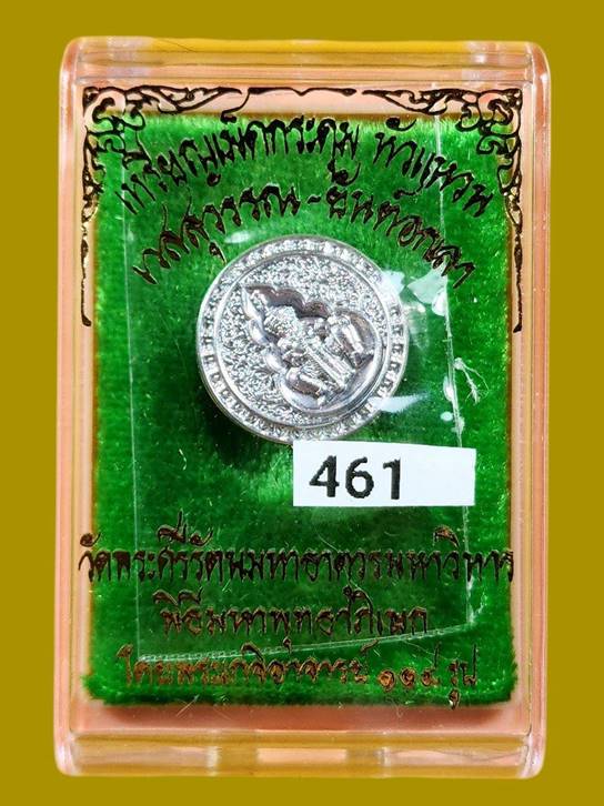 (เนื้อปีกเครื่องบิน-แจกในพิธี เลข 461 ) เหรียญเม็ดกระดุม หัวแหวน เวสสุวรรณ ยันต์นะเศรษฐี หลังยันต์อกเลาพระพุทธชินราช : สาริกาคู่ #ขนาดเส้นผ่าศูนย์กลาง 1 เซนติเมตร วัดพระศรีรัตนมหาธาตุวรมหาวิหาร |