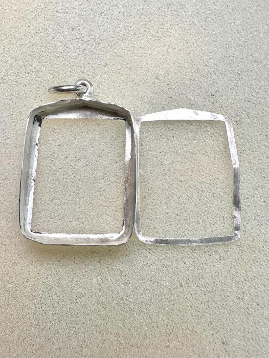 กรอบเงินทรงสี่เหลี่ยม พร้อมใช้งาน น้ำหนัก 4.15 กรัม ขนาดวัดจากด้านในกรอบ มีรูปเพิ่มเติมด้านล่างค่ะ