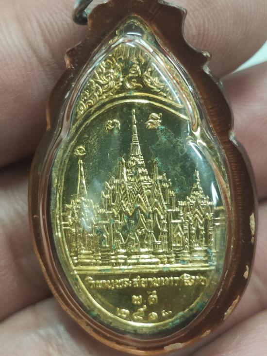 เหรียญพระสยามเทวาธิราช วัดป่ามะไฟ จ.ปราจีนบุรี พิมพ์เล็ก เนื้อทองแดงกะไหล่ทอง เลี่ยมกันน้ำ |