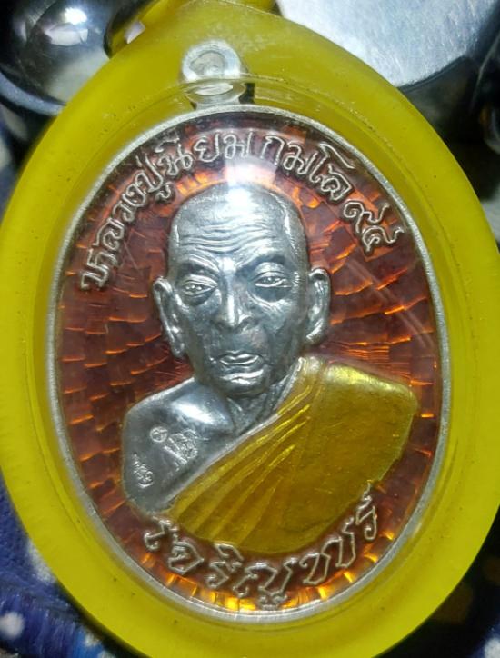 เหรียญเจริญพรเมตตามหานิยม หลวงปู่นิยม กมโล เนื้อเงินลงยาแเดง วัดแจ้งนอก ปี 2555 |