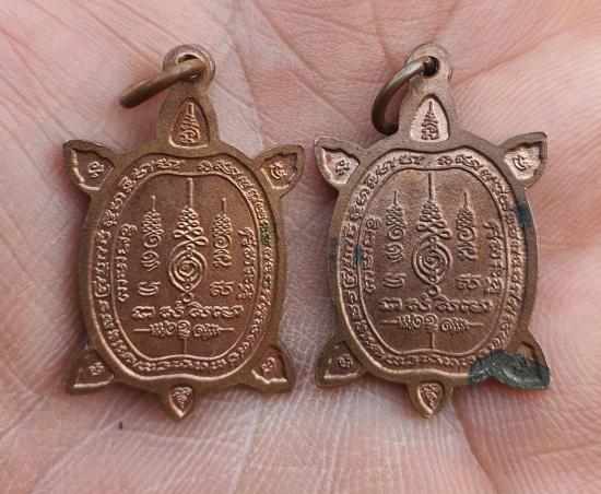 วัดใจเหรียญพญาเต่าเรือน รุ่นเพื่อมาตุภูมิปี41(พิมพ์พระสังกัจจายน์)เนื้อทองแดง หลวงปู่หลิววัดไร่แตงทอง (ออกวัดหนองอ้อ) จำนวน2เหรียญ |
