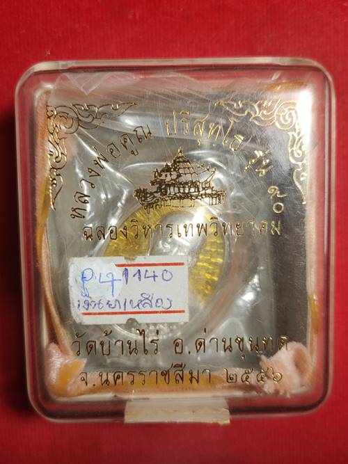 เหรียญหลวงพ่อคูณ ปริสุทโธ รุ่น ฉลองวิหารเทพ ออกวัดบ้านไร่ ปี 56 เนื้อ เงินลงยาสีเหลือง หมายเลข 1140 เลี่ยมพร้อมใช้ เคาะเดียวแดง |