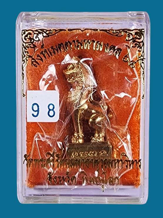 สิงห์เมตตามหามงคล เนื้อทองแดง( ทองชมพู ) เลข 98-สุดยอดเครื่องรางของขลัง รุ่นแรก ของวัดพระศรีรัตนมหาธาตุวรมหาวิหาร พิษณุโลก วัดจัดสร้างเอง |