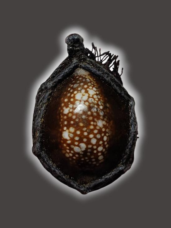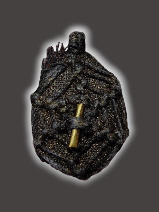 T122-เบี้ยแก้เชือกถักหลังตะกรุด1ดอก ไม่ทราบที่ |