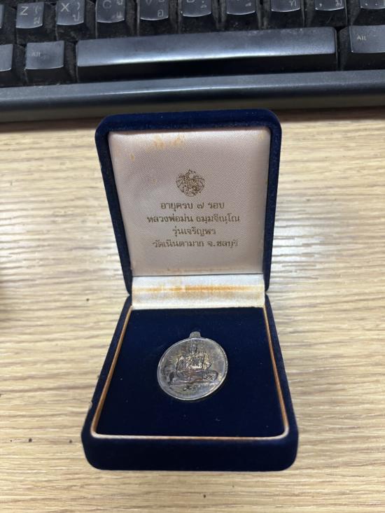 หลวงปู่ม่น วัดเนินตามาก จ.ชลบุรี รุ่นเจริญพร ( ครบ ๗ รอบ ) เนื้อเงิน