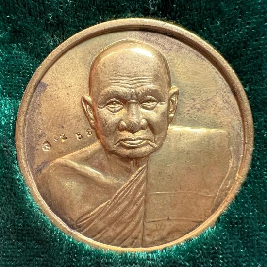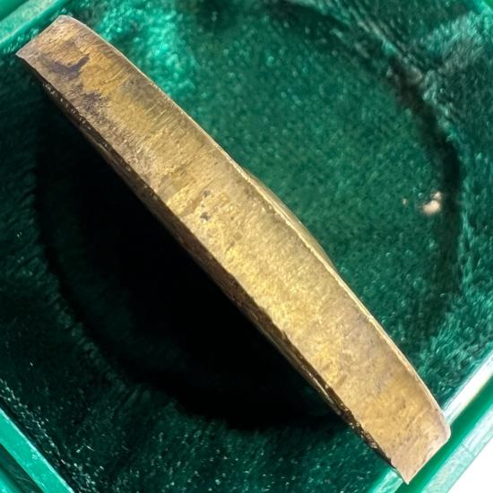เหรียญบาตรน้ำมนต์ หลวงปู่ทิม วัดพระขาว รุ่นแรก ปี พ.ศ. 2538 เนื้อทองฝาบาตร เลข 258 กล่องเดิม |
