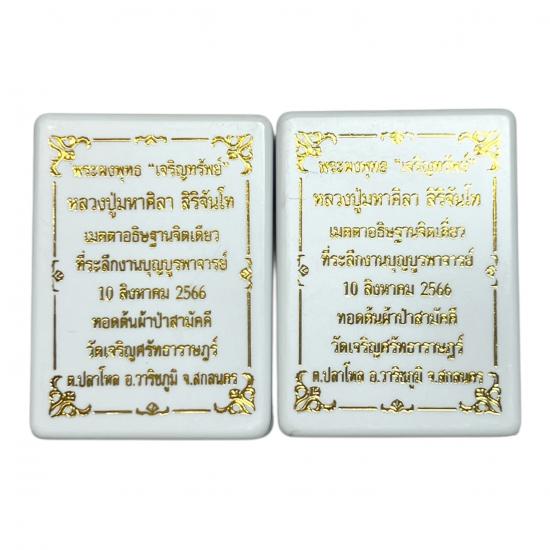 2องค์!! พระผงพุทธ***"เจริญทรัพย์" หลวงปู่มหาศิลา สิริจันโท เนื้อว่านม้าขาวปิดแผ่นทองคำเปลวฝังพลอยจิ๋วในด้านหน้าหลังคลุกผงจีวร สร้างเพียง 3000 องค์ |