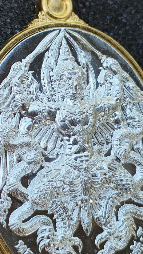 เหรียญครุฑหยุดนาค รุ่นแรก"ดวงประสูติ"หลวงพ่อประสูติ ปิยธัมโม วัดถ้ำพระพุทธโกษีย์(ในเตา)จ.ตรัง เนื้อชุบทองหน้ากากชุบเงินเต็มแผ่น หลังยันต์ดวงประสูติ หมายเลข ๑๑ พร้อมกล่อง (สร้าง๒๙เหรียญ) |