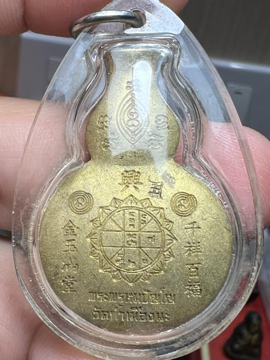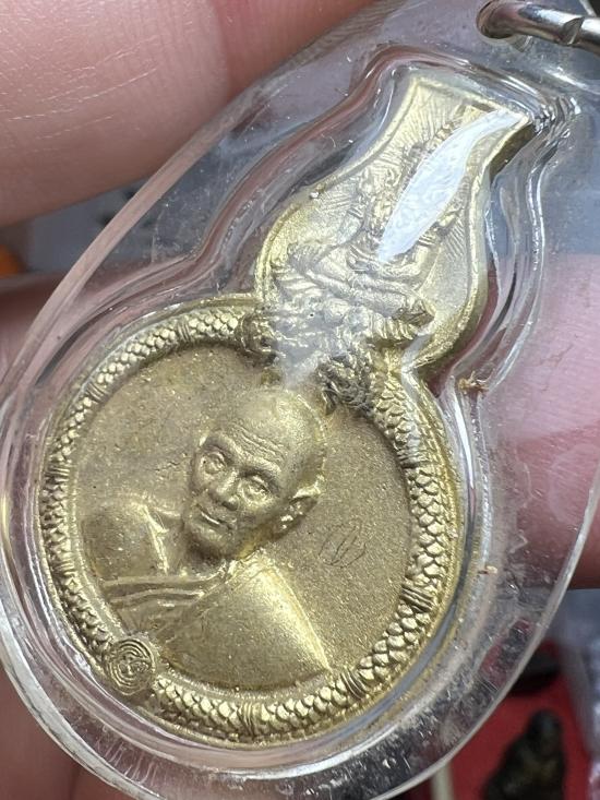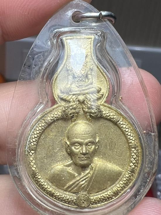เหรียญหล่อน้ำเต้าดูดทรัพย์เนื้อชนวน หลวงตาม้า วัดถ้ำเมืองนะ(พุทธพรหมปัญโญ) พร้อมรอยจารหลวงตาม้า เลี่ยมจากวัด