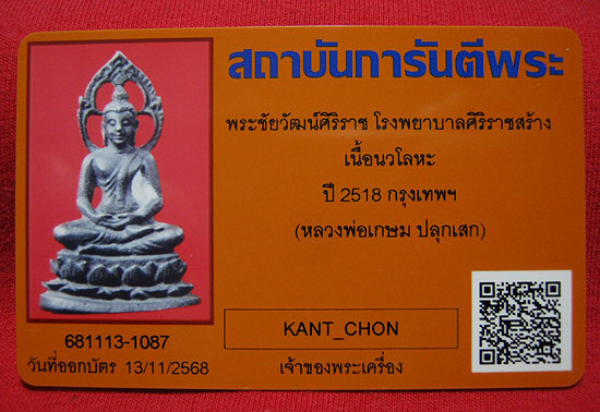 พระชัยวัฒน์ 84 ปี ศิริราช เนื้อนวโลหะ พร้อมบัตรรับรองพระเครื่องครับ