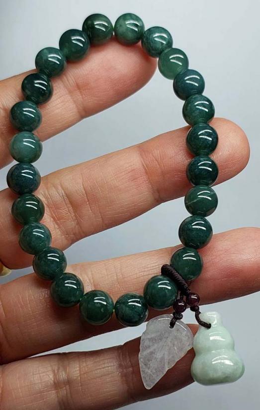 ***วัดใจ***สร้อยข้อมือ หยกจักรพรรดิ์ พร้อมจี้น้ำเต้าดูดทรัพย์ เม็ด 8 มิล สวยๆ |