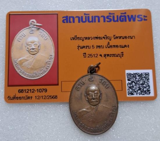 เหรียญ หลวงพ่อเจริญ5รอบ รุ่นแรก ปี12 พร้อมบัตร รับรอง