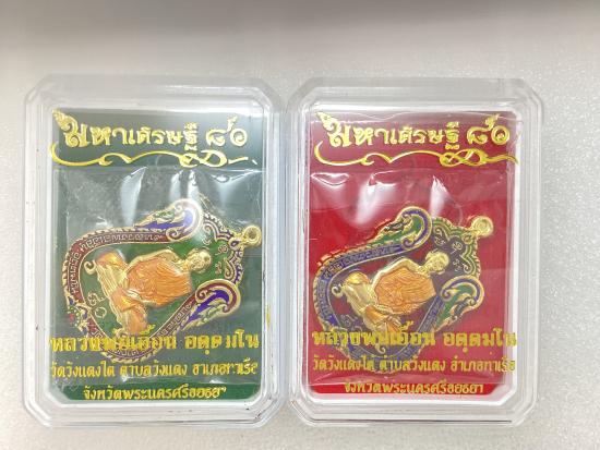 เคาะเดียวแดง 200 ( 2 เหรียญ) เหรียญรูปเหมือน หลังหนุมาน8กรขี่สิงห์ รุ่น มหาเศรษฐี๘๐ หลวงพ่อเอื้อน วัดวังแดงใต้ จ.พระนครศรีอยุธยา เนื้อกะไหล่ทองลงยาสีแดง ,สีเขียว กล่องเดิม |