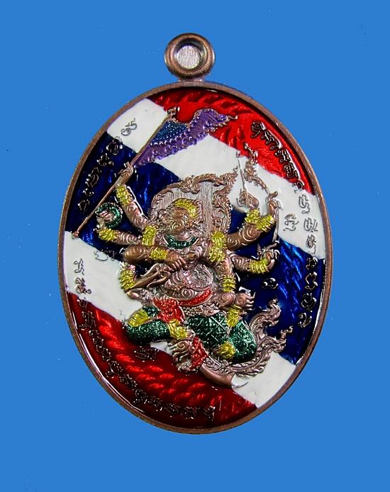 หรียญหนุมานปราบไพรี เนื้อทองแดงมันปู ลงยาธงชาติเฉียง+หนุมานเพ้นท์ หลังยันต์จม No 67 หลวงปู่ฝั้น วัดศรีถมอรัตน์ (หน้าผา) เพชรบูรณ์
