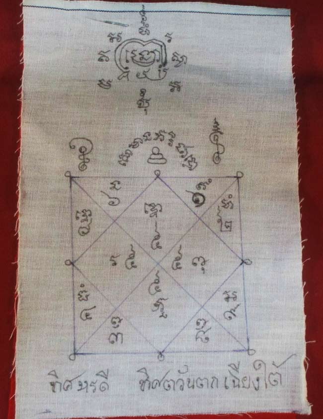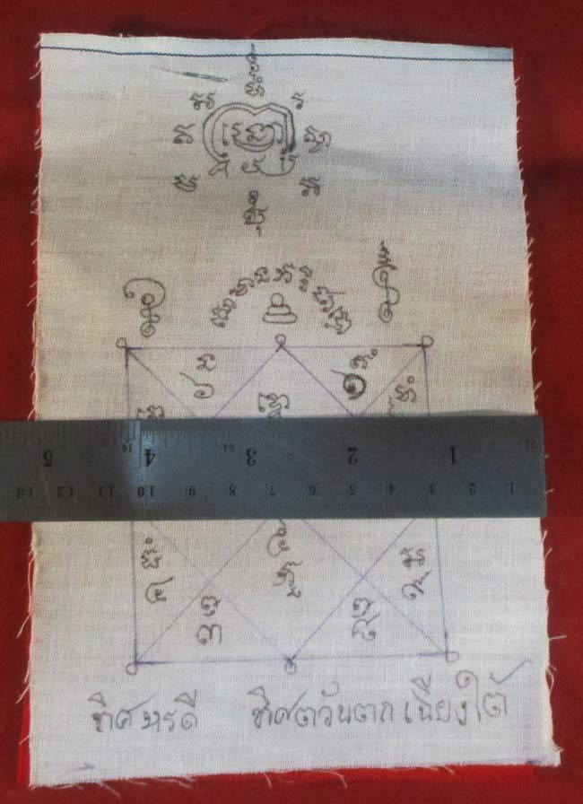 ผ้ายันต์ ไม่ทราบที่ จารยันต์ด้วยมือ ครับ