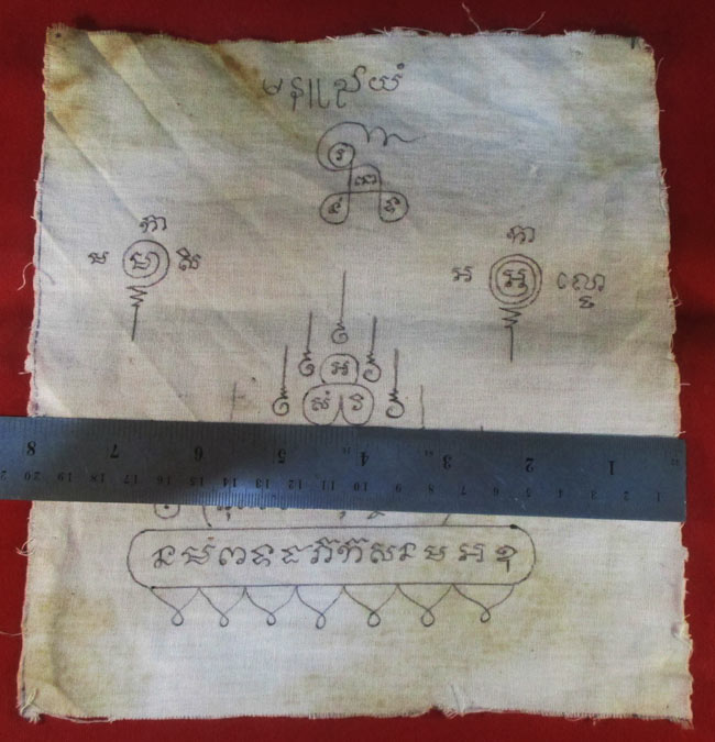 ผ้ายันต์ ไม่ทราบที่ จารยันต์ด้วยมือ ครับ