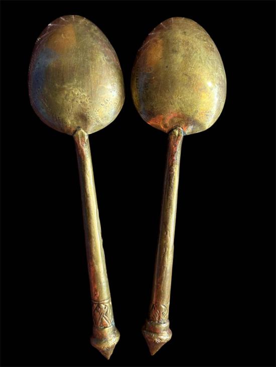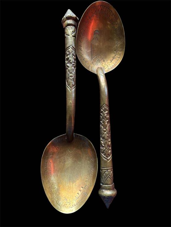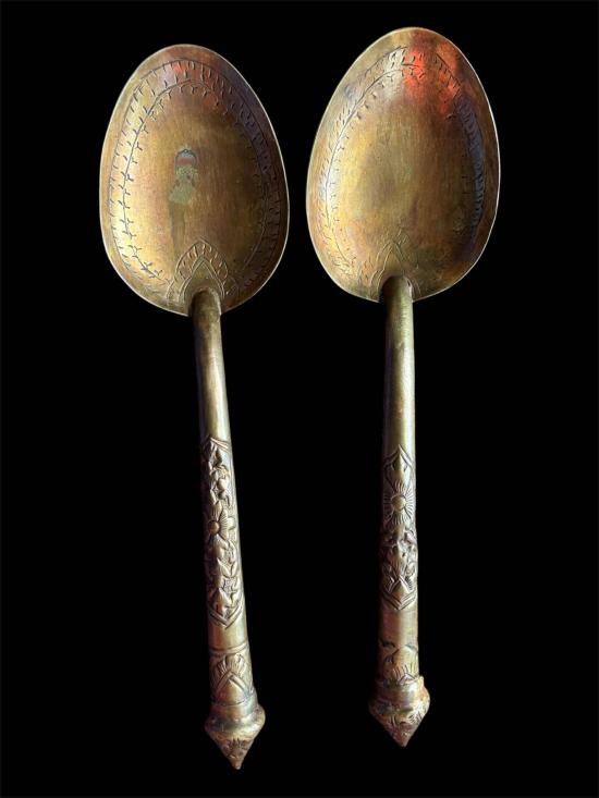 ทัพพีทองเหลืองโบราณตอกลาย ทรงหัวบัวขนาด9นิ้วยกคู่2ชิ้น |