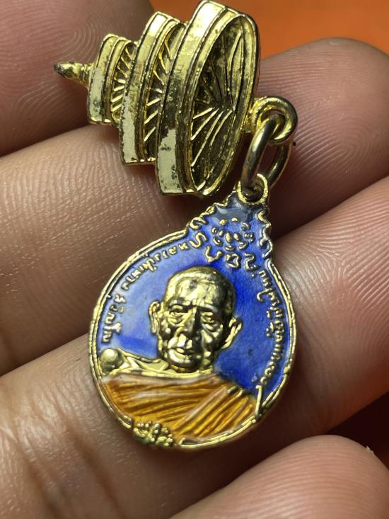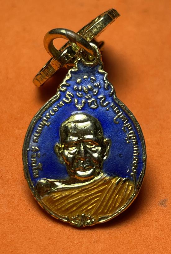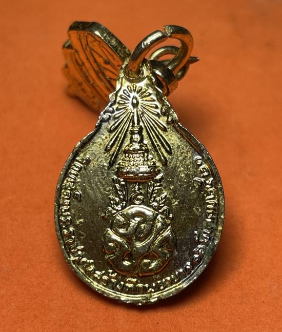 เหรียญพร้อมเข็มหลัด หลวงปู่แหวน วัดดอยแม่ปั๋ง รุ่นสร้างตึกโรงพยาบาล พิมพ์เล็ก หลัง ภปร ปี 2521 กระไหล่ทองลงยา |