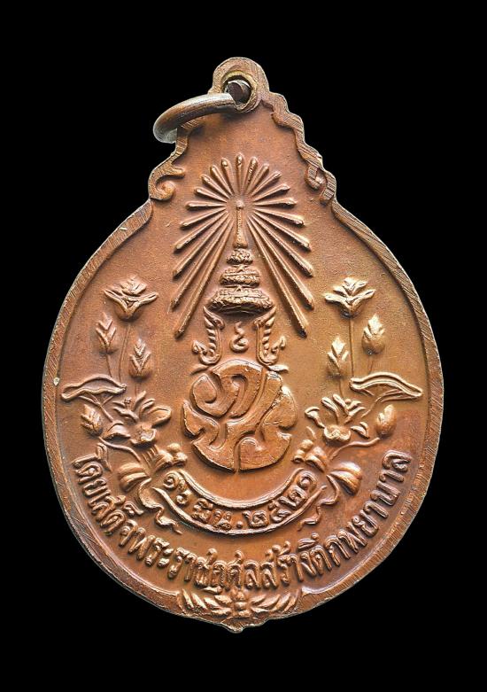 เหรียญที่จัดสร้างครั้งนี้ ได้ขอพระราชทานพระบรมราชาอนุญาตอัญเชิญพระปรมาภิไธยย่อ ภปร ไว้ประดิษฐานที่ด้านหลังเหรียญ ทั้งนี้ก็เพื่อเป็นการแสดงความจงรักภักดีตองค์พระบาทสมเด็จพระเจ้าอยู่หัว และเพื่อชักชวนประชาชนทั่วไปทุกหมู่คณะให้ได้บริจาคทรัพย์ โดยเสด็จพระราชกุศลในกิจการที่เป็นสาธารณกุศล โดยได้รับพระบรมราชาอนุญาต เมื่อวันที่ 14 เมษายน |