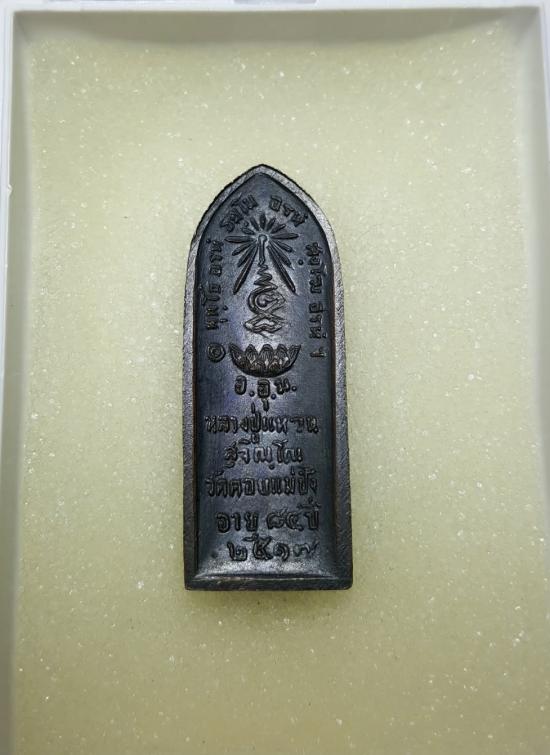 เหรียญยืนหลังรางปืน หลวงปู่แหวน สุจินโน วัดดอยแม่ปั๋ง จ.เชียงใหม่ พ.ศ. 2517 เนื้อทองแดงรมดำ |
