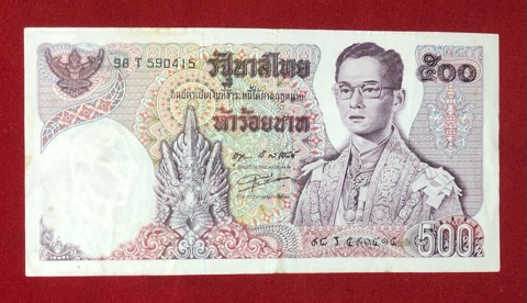 ร.9 ธนบัตร500- แบบ11 หลังพระปรางค์สามยอด ไม่ผ่านใช้ ติดเหลืองนิดๆ |