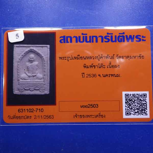 พระรูปเหมือน หลวงปู่คำพันธ์ พิมพ์ขาโต๊ะ วัดธาตุมหาชัย ปี36 ...5 ..(63.11.6)