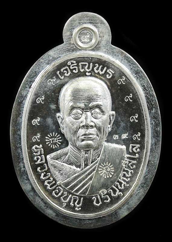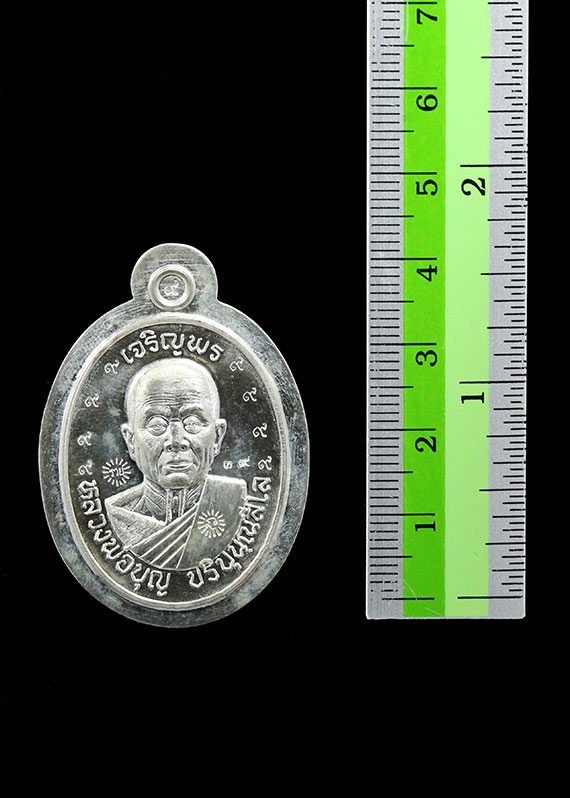 เหรียญ รุ่นเจริญพรบน หลวงปู่บุญ ปริปุนฺณสีโล สวนนิพพาน ( วัดปอแดง ) จ.นครราชสีมา เมตตามหานิยม พ.ศ.2558 เนื้อเงินบริสุทธิ์ไม่ตัดปีก ตอก 11 โค๊ต ตอกเลข สภาพสวยสมบูรณ์
