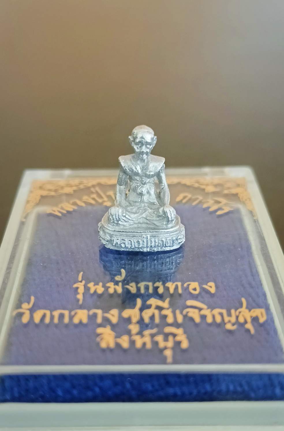 หล่อรูปเหมือน หลวงปู่บุดดา สิงห์บุรี เนื้อเงิน สวยในกล่องเดิม |