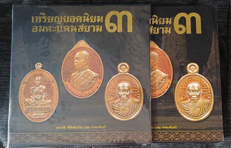 หนังสือปกแข็งพร้อมกล่อง เหรียญยอดนิยมอมตะแดนสยาม เล่ม 3 (โดย บอย ท่าพระจันทร์ )##พิเศษในเล่ม มีลายเซ็น บอย ท่าพระจันทร์ ภายในเล่ม***หนังสือสภาพใช้งาน พิจารณาตามภาพประกอบ***