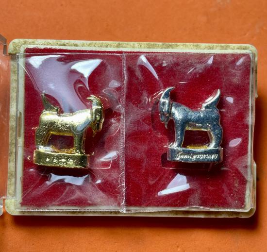แพะเศรษฐีคู่ เงิน-ทอง มหาลาภ ที่ระลึกงานยกช่อฟ้า วัดหนองกระบอก จ.ระยอง กล่องเดิมซองเดิม |