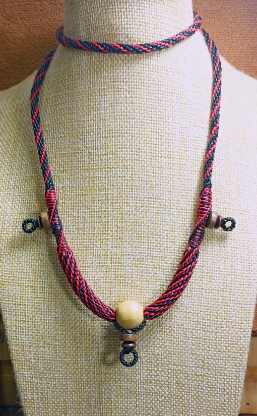 สร้อยคอเชือกเทียน งานถักมือ ( สีดำ-แดงเข้ม + แซมลูกปัดไม้ธรรมชาติ ห้อยพระ 3 องค์ ) ยาว26 นิ้ว ครับ |