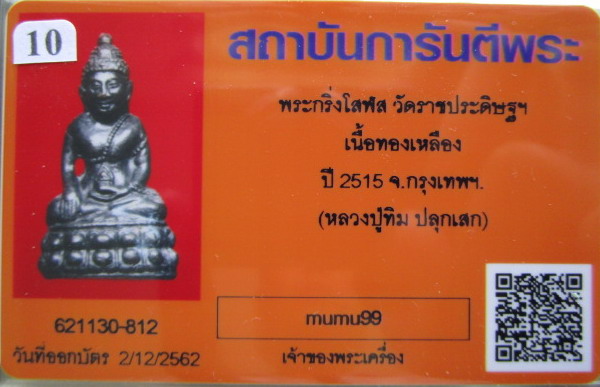 พระกริ่งโสฬส มปร เนื้อทองเหลืองรมดำ วัดราชประดิษฐ์ ปี 2515 พระดี พิธีใหญ่ยิ่ง ในหลวงเสด็จเททอง......หลวงปู่ทิม...หลวงปู่ดู่.. ปลุกเสก พร้อมบัตรรับรอง |