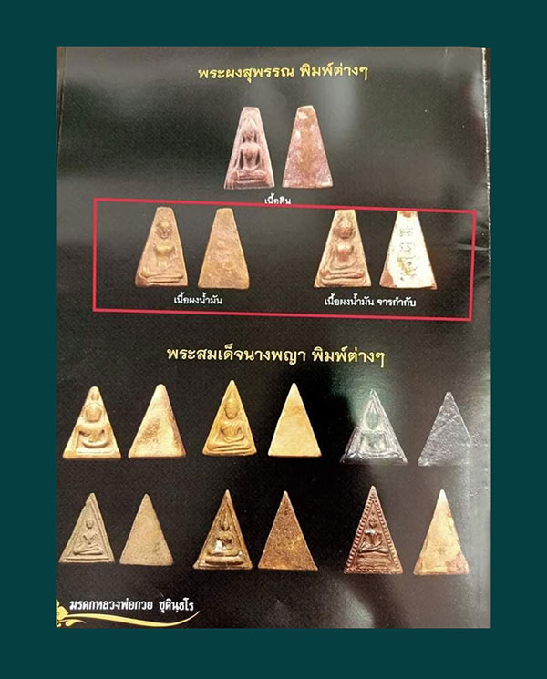 พระพิมพ์ผงสุพรรณหลวงพ่อกวยปี15เนื้อผงน้ำมันเคาะเดียวแดง |