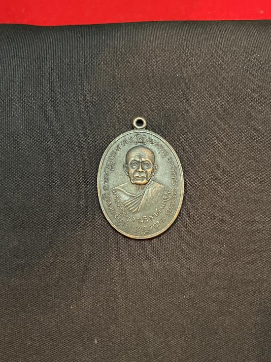 เหรียญหลวงพ่อแดงหลังหลวงพ่อเจริญ เนื้อทองแดงรมดำ ปี2514 วัดพลับพลาชัย เพชรบุรี(บล็อค ตาราง นิยม) |