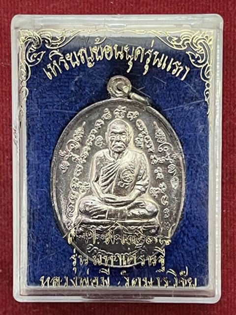 เหรียญย้อนยุค รุ่นแรก หลวงพ่อมี วัดมารวิชัย ปี 38 เนื้อเงิน ผิวเดิม เคาะเดียวแดงครับ