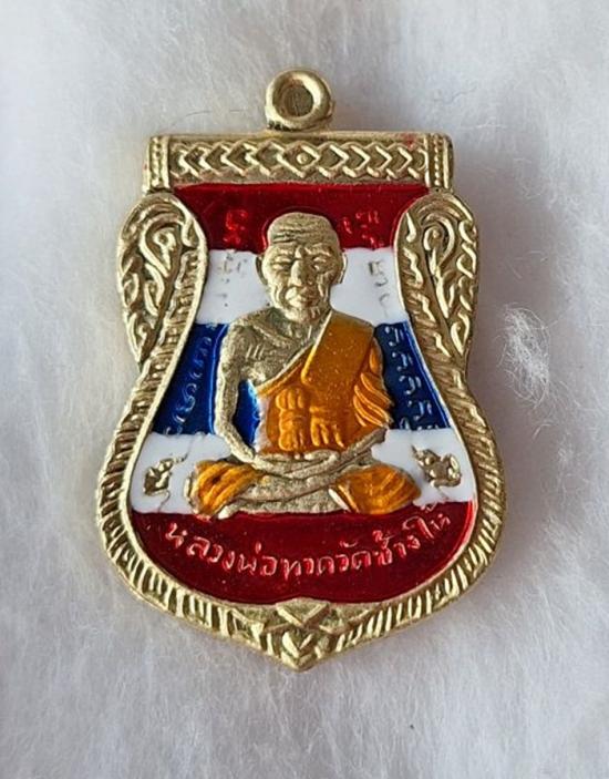 วัดใจ หลวงปู่ทวด หลวงปู่ศิลา เมตตาอธิษฐานจิต รุ่นเลื่อนสมณศักดิ์ เหนือดวง เนื้อทองทิพย์ ลงยาลายธงชาติ No.403 |