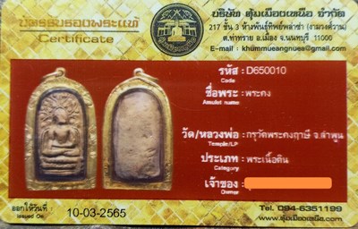 พระคง เนื้อดิน โพธิ์-บัว เด้งสวยๆ พร้อมบัตรสถาบันอื่นๆ(บัตรสายตรงพระสกุลลำพูน) พร้อมเลี่ยมกรอบทอง (ทองประมาณเกือบ 3 กรัมทำมา 10000 กว่า) |