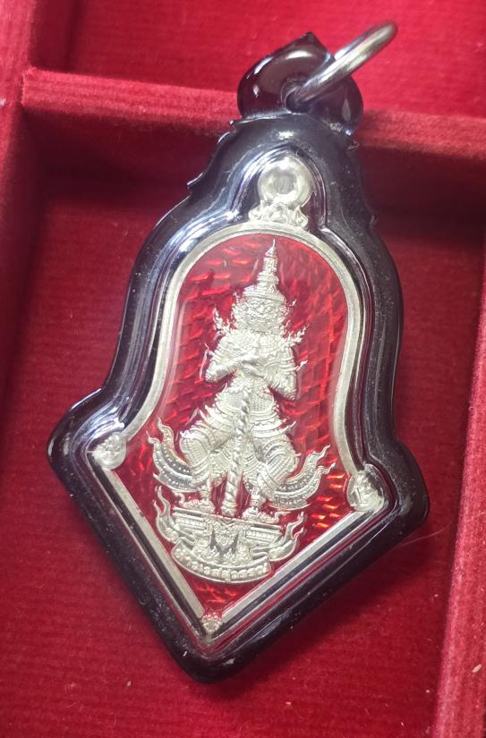 เหรียญท้าวเวสสุวรรณ งานไหว้ครู ๙๙ ปี หลวงปู่แผ้ว ปวโร วัดรางหมัน เนื้อเงินลงยาแดง
