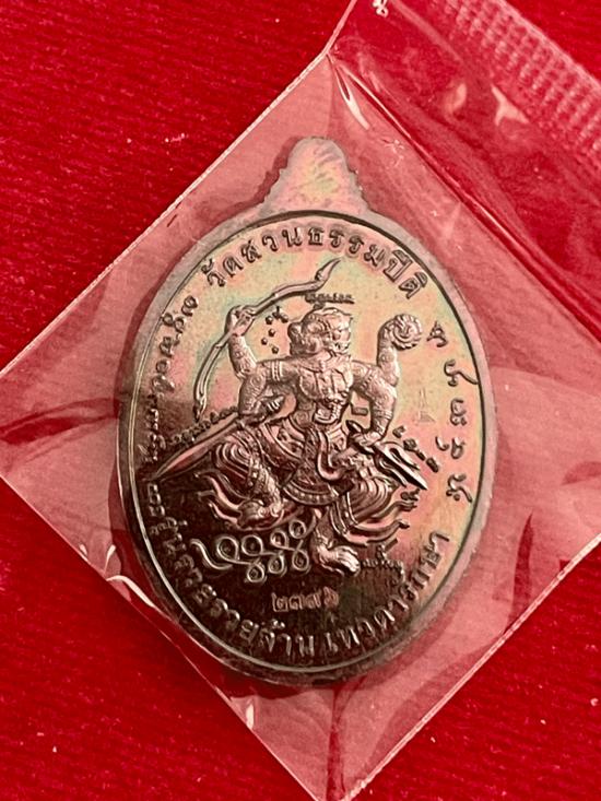 หลวงปู่ศิลา สิริจันโท รุ่น รวยรวยล้าน เทวดารักษา เนื้อทองแดงผิวรุ้ง เลข 2396 หลังหนุมาน เคาะเดียวแดง |