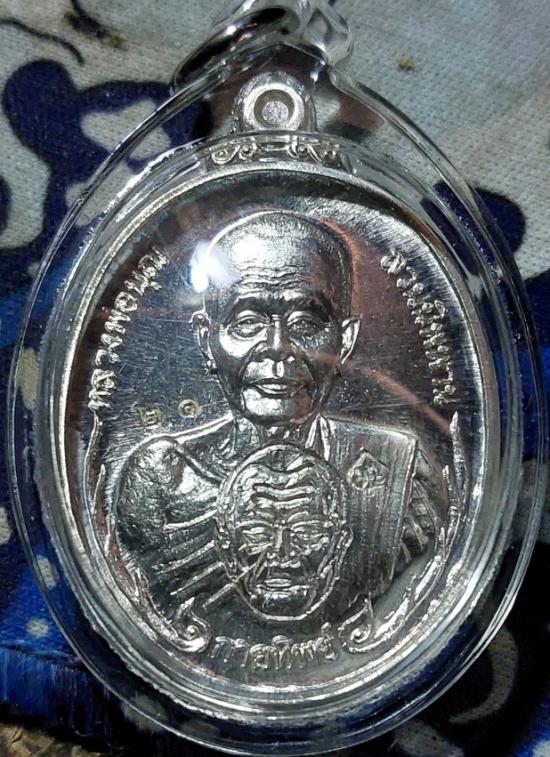 เหรียญที่ระลึกในการสร้างเจดีย์ รุ่นกายทิพย์ หลวงปู่บุญ เนื้อเงิน เลข 21 สวนนิพพาน วัดปอแดง อ.ปักธงชัย