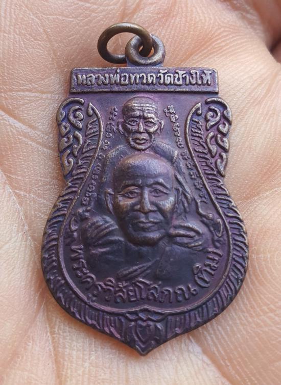 เหรียญหลวงปู่ทวด วัดช้างให้ พิมพ์เสมาพุฒซ้อน เนื้อทองแดงรมดำ ปี 2539 หลังสถูป |