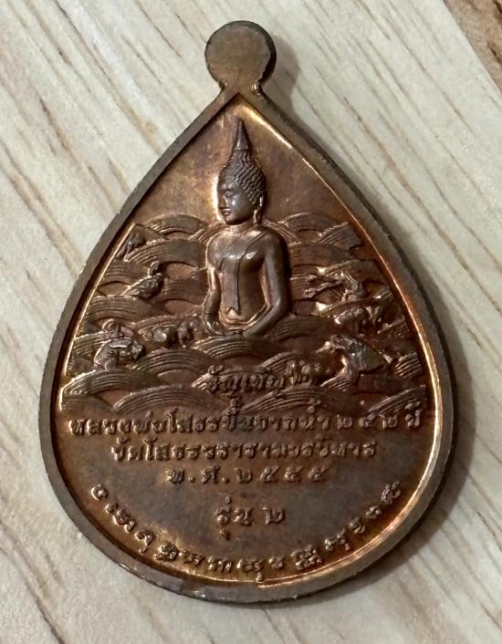 เหรียญอัญเชิญหลวงพ่อโสธรขึ้นจากน้ำ ๒๔๒ ปี รุ่น 2 ปี 2555 ทรง หยดน้ำ เนื้อทองแดง สวยครับ มีเลข |