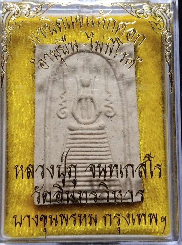 พระสมเด็จหลวงปู่ภู วัดอินทรวิหาร บางขุนพรหม กทม พิมพ์แซยิด แขนหักศอก รุ่นอายุยืน ไม่มีโรค สวยพร้อมกล่อง