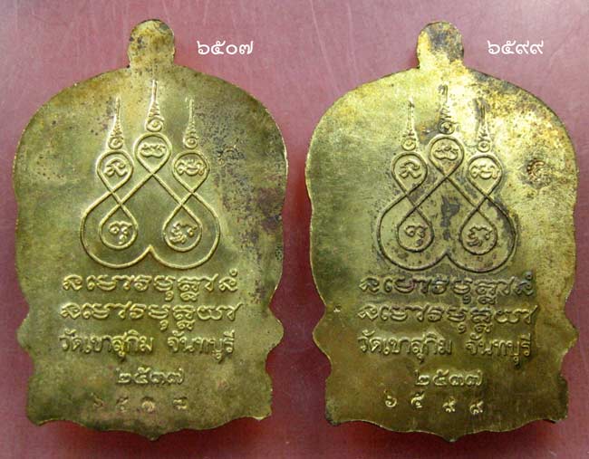 เหรียญนั่งพาน เนื้อทองเหลือง หลวงพ่อสมชาย วัดเขาสุกิม ตอกโค้ด ส และโค้ด จำนวน 2 เหรียญ หมายเลข ๖๕๐๗ และ ๖๕๙๙ ได้มาจากคนในพื้นที่