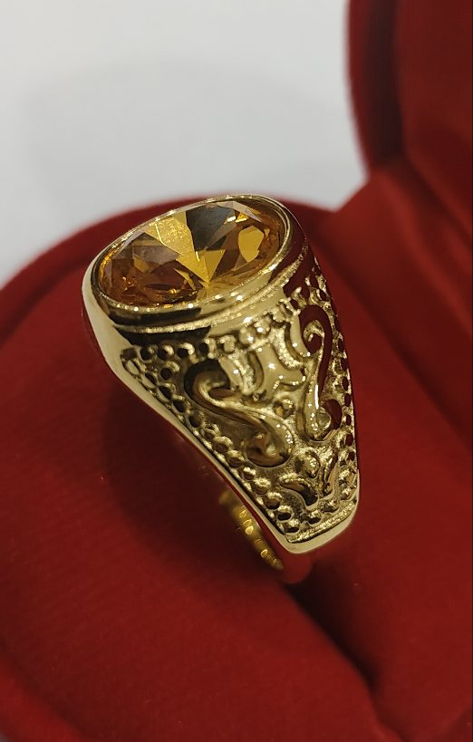 เทขาดทุน+++แหวนทองชุบยิงเลเซอร์ แหวนมหามงคลเสริมบารมี หัวพลอยบุษราคัม สวยมาก สวยๆ |