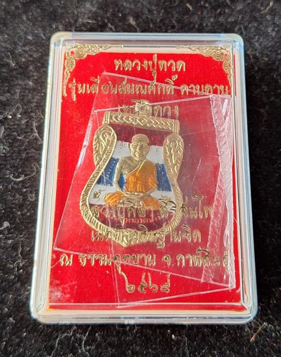วัดใจ หลวงปู่ทวด หลวงปู่ศิลา เมตตาอธิษฐานจิต รุ่นเลื่อนสมณศักดิ์ ดวง เนื้อทองเหนือทิพย์ ลงยาลายธงชาติ No.479 |