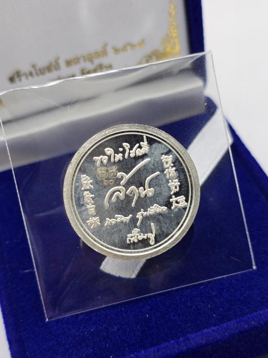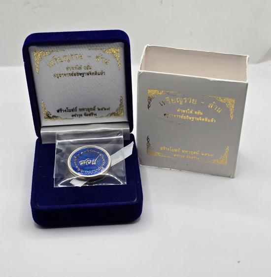 เหรียญ คำพร รวยล้าน หลวงปู่ศิลา หลวงปู่มหาศิลา สิริจันโท วัดพระธาตุหมื่นหิน จ.กาฬสินธุ์ (ปลุกเสกพิธีเดียวกับเหนือดวง 2) เนื้อเงินลงยาน้ำเงิน เลข ๖๐ มีกล่องเดิม