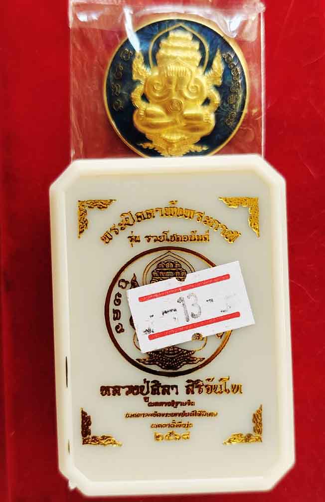 เหรียญพระปิดตาพังพระกาฬ หลวงปู่มหาศิลา สิริจันโท รุ่นรวยโชคอนันต์ เนื้อทองฝาบาตร ลงยาน้ำเงิน no.522 แยกจากชุดกรรมการลงยา กล่องเดิม |