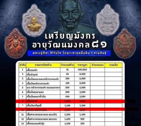 วัดใจ เลขสวยๆ หลวงปู่มหาศิลา สิริจันโท(หลวงปู่ศิลา) อายุวัฒนะมงคล81 เหรียญมังกร "เนื้อเงิน" รับประกันพระแท้ตามกฎเวป *กดดูที่ฆ้อนมีหลายรายการ"สา #เจริญอายุวัฒนมงคล81 |